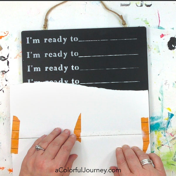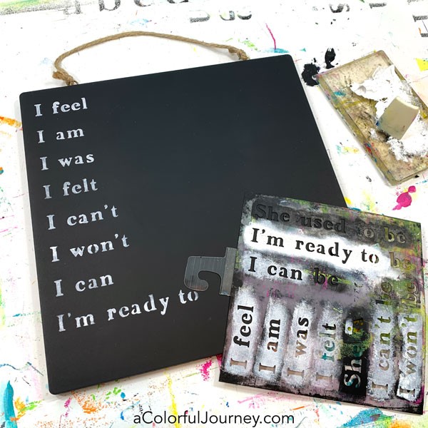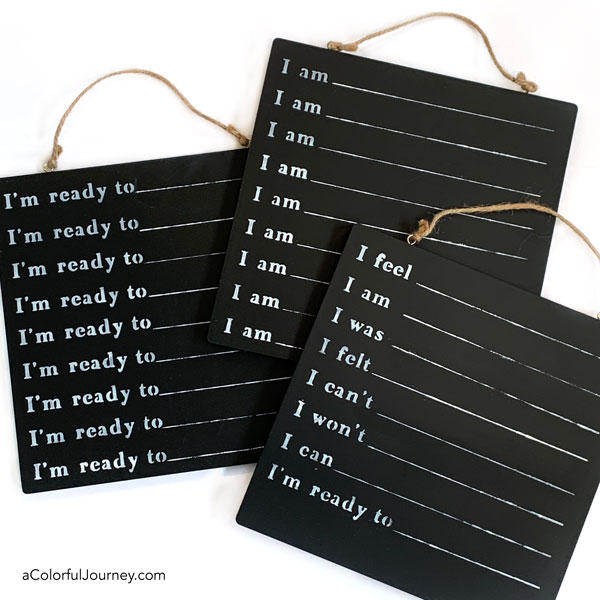Stencil the words you want on there. I did three of these using my Journal Starters stencil from StencilGirl. You can choose something different for each line or repeat the same one over and over. So many options for you with the one single stencil!