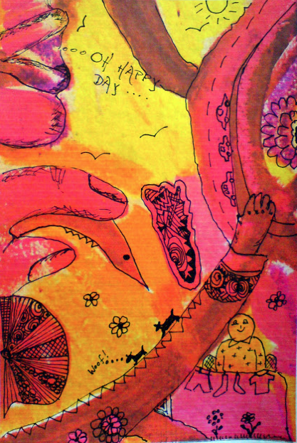 Valerie found all sorts of fun images in this Spark. Love the hands reaching and how they are different sizes-that adds such a playful feeling to it for me! Cars zooming down the road, the sun shining- what a great world she found in this Spark with her pen!