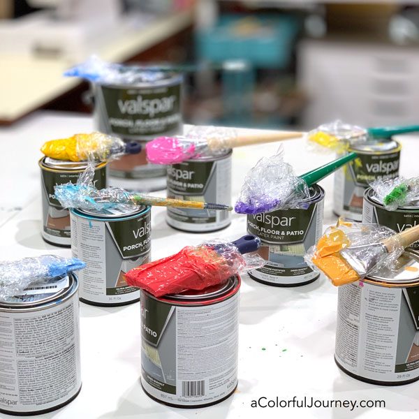 To save myself some brush cleaning, I wrapped the brushes in plastic wrap so I could skip cleaning them at the end of the day. The whole process took 2- 3 days and it was a real time saver to not have to wash so many brushes out after each coat.